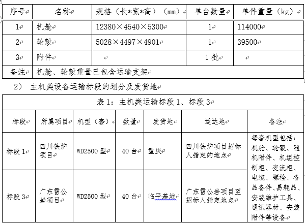 1、主機(jī)類(含機(jī)艙、輪轂及相關(guān)附件等)運(yùn)輸:分標(biāo)段1、標(biāo)段3二個(gè)標(biāo)段;