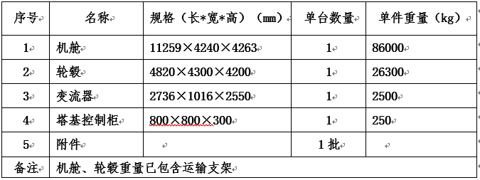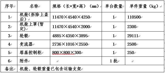 特別備注:2.5MW機艙因尺寸超高,運輸時(shí)需要將上部機艙罩拆除后分兩部分進(jìn)行運輸,投標人報價(jià)時(shí)考慮兩部分運輸的投標報價(jià)。