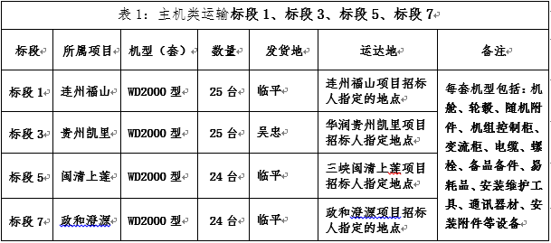 華潤連州福山、華潤電力貴州凱里01(萬(wàn)潮)三峽新能源閩清上蓮、中廣核福建政和澄源四項目風(fēng)電機組設備運輸招標公告